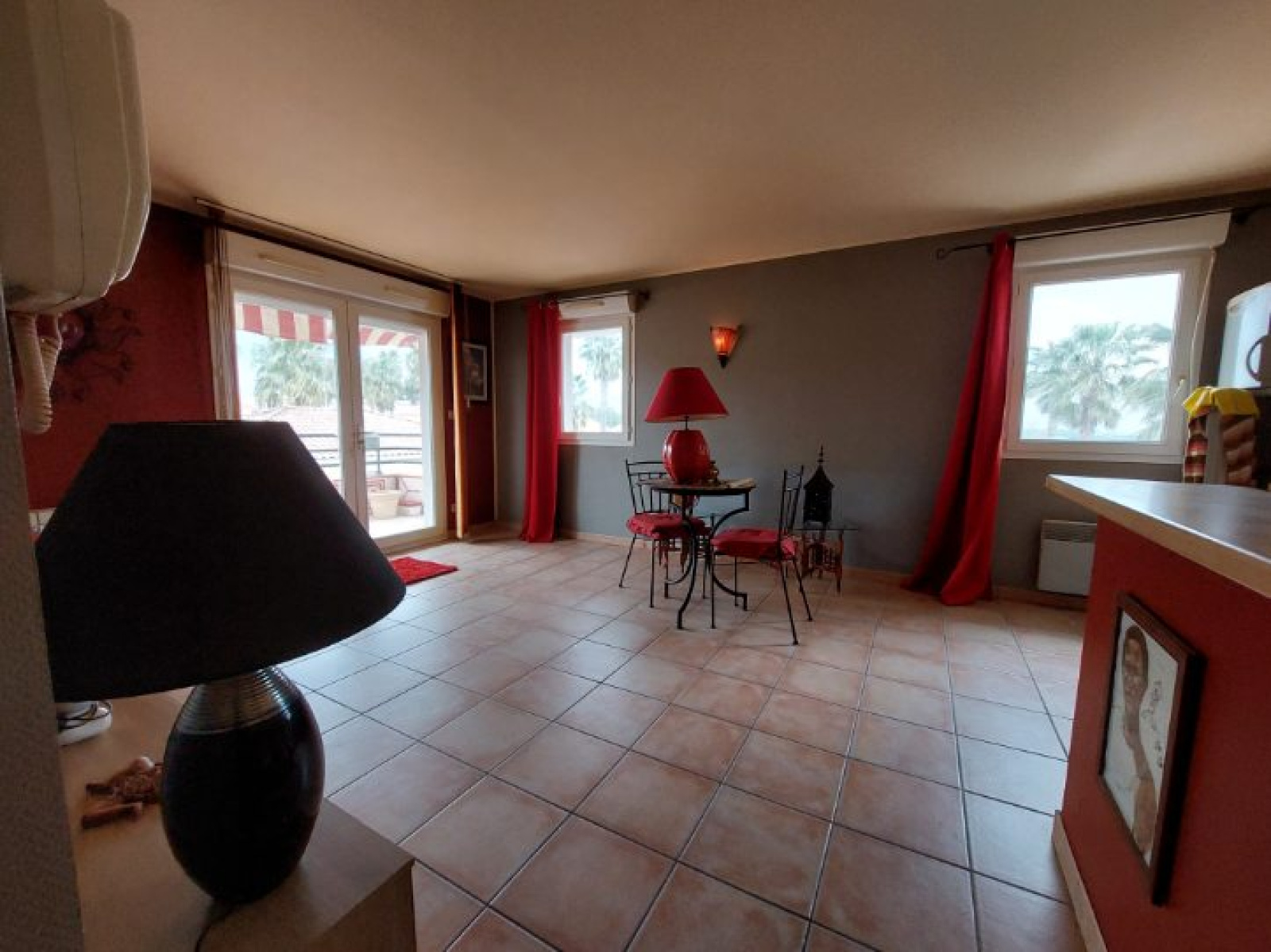 Quartier Montimaran, Résidence Bougainvillées II, au second et dernier étage, appartement de 54 m² habitables avec terrasse de 10 m² et place de parking. Séjour de 26 m² avec cuisine us équipée, 2 chambres avec placard, salle d'eau, wc séparés. Double vitrage, volets roulants, climatisation reversible.