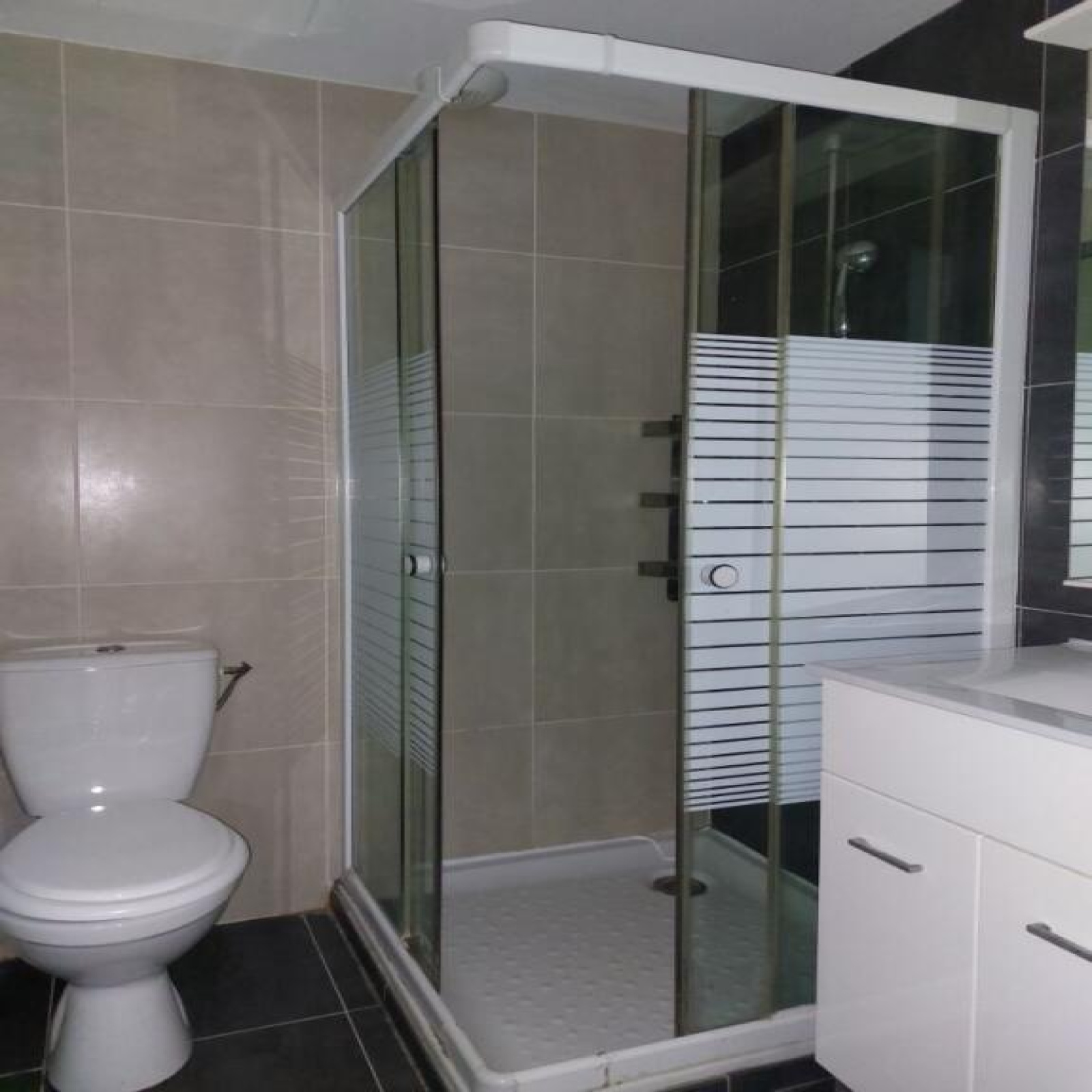 Villa de type 3, 2 faces, rez-de-chaussée élevé d'un étage, 55 m² habitables environ avec terrasse, jardinet et parking. Double vitrage, volets motorisés, central gaz.