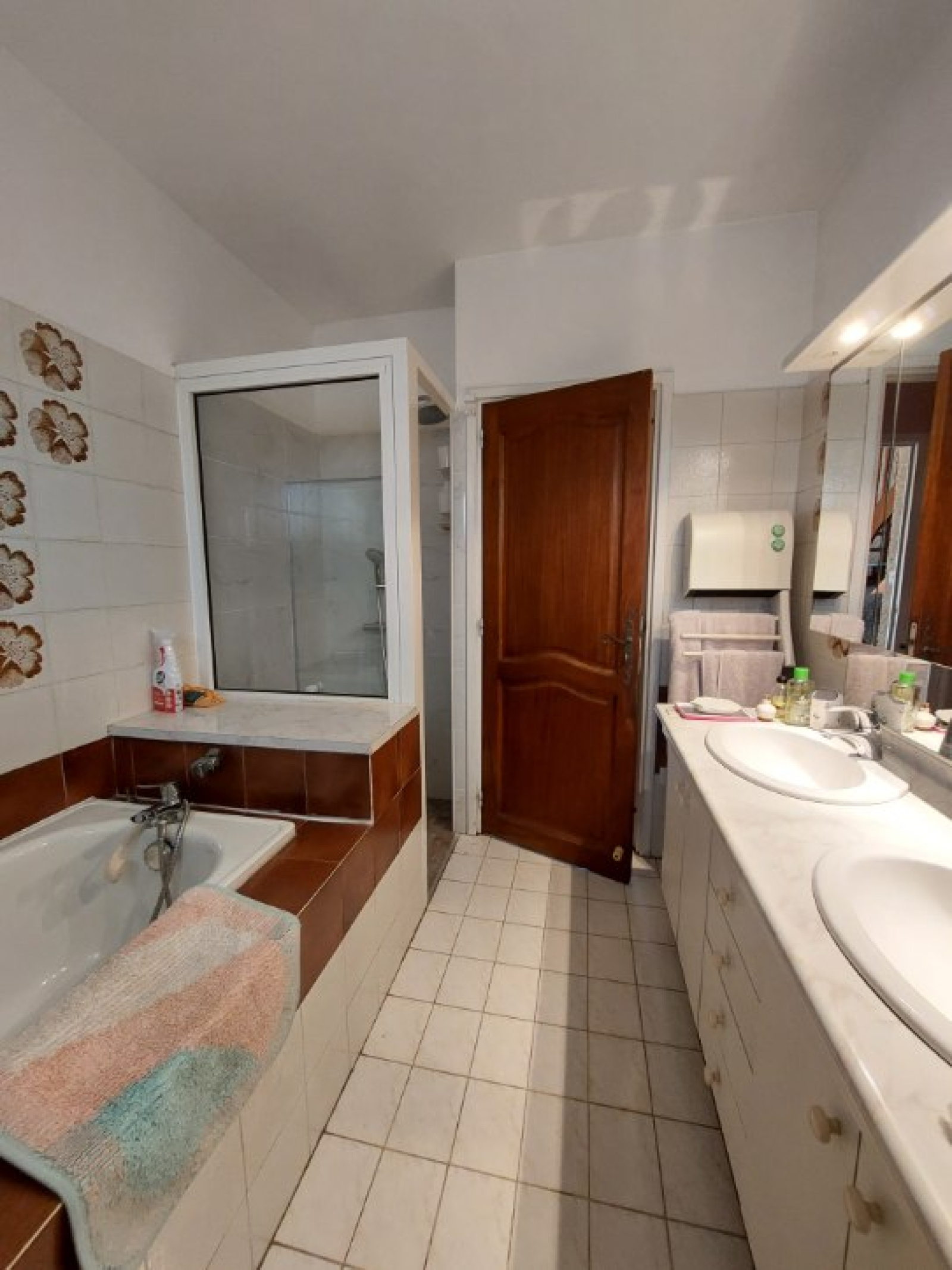 Bon quartier, maison 4 faces, 128 m² habitables environ sur terrain de 723 m². Rez-de-chaussée hall, séjour avec plafond rampant, 2 chambres, salle de bains + douche, cuisine indépendante, wc. A l'étage mezzanine, 2 chambres, buanderie, wc. Volets motorisés, terrasses, barbecue, garage de 19 m², places de parking.