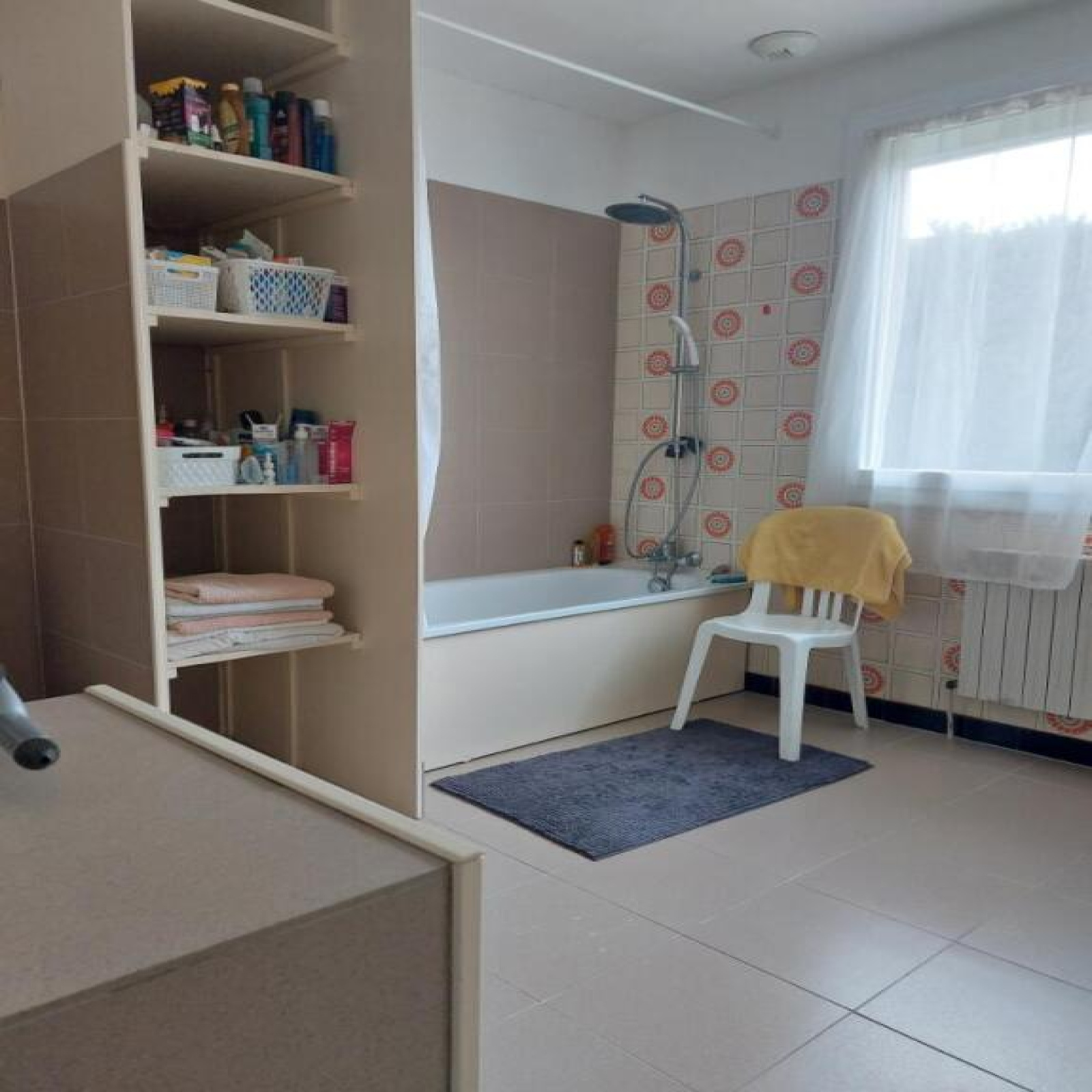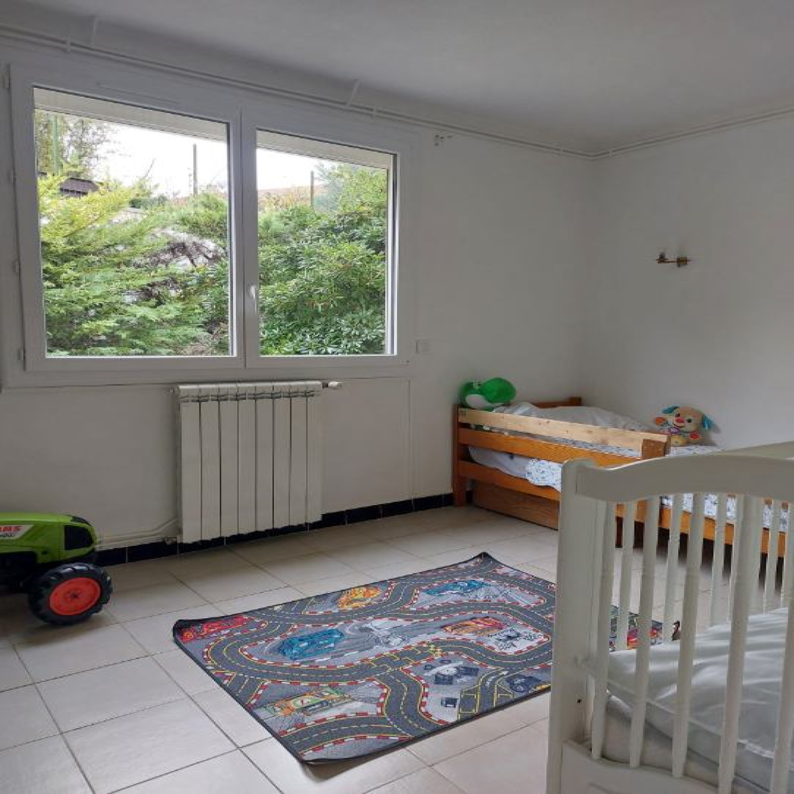 Dans impasse calme, maison de type 5 de 146 m² habitables sur parcelle de 490 m² environ. Comprenant au rez-de-chaussée dégagement, séjour, chambre, salle d'eau wc, garage. A l'étage dégagement 2 chambres, séjour donnant sur balcon, salle de bains wc, cuisine américaine. Menuiseries double vitrage, volets motorisés, chauffage central gaz.