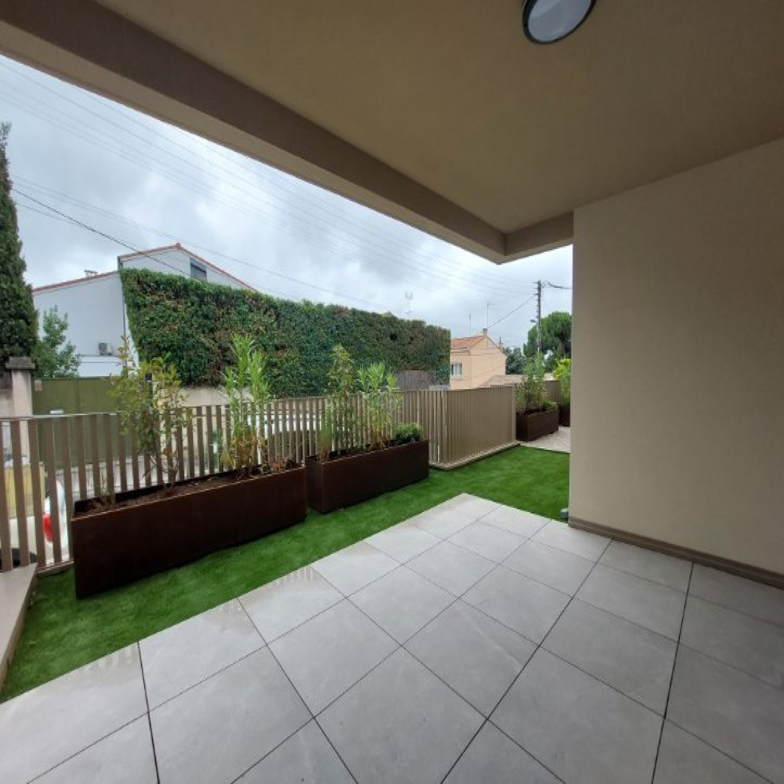 Rrare. Quartier recherché des Arènes, au rez-de-chaussée surélevé d'une résidence de standing récente, spacieux appartement de type 2 de 54.65 m² habitables avec terrasse-jardin de 22 m² exposé sud. Séjour avec cuisine américaine semi équipée, chambre avec placard, salle d'eau, cellier, wc. Climatisation réversible, cumulus thermodynamique. Place de parking privative en sous-sol. Normes RT2012 et PMR.