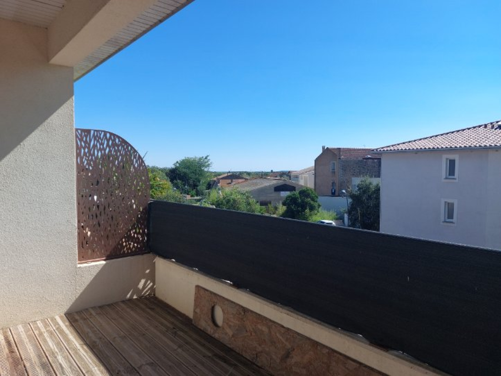 Au second et dernier étage d'une petite résidence sécurisée, T2 de 38 m² avec terrasse de 10 m². Séjour avec cuisine américaine semi équipée, salle d'eau, wc,chambre avec placard. Volets motorisés, chauffage électrique. Cellier et place de parking privative.